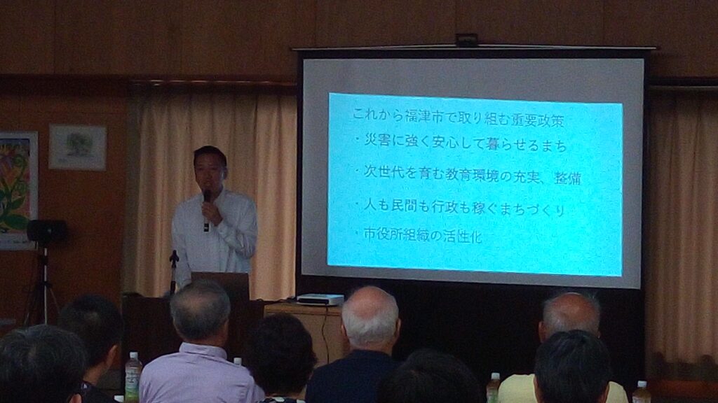 そして予算書をもとに福津市の現状や課題についてお話ししました。