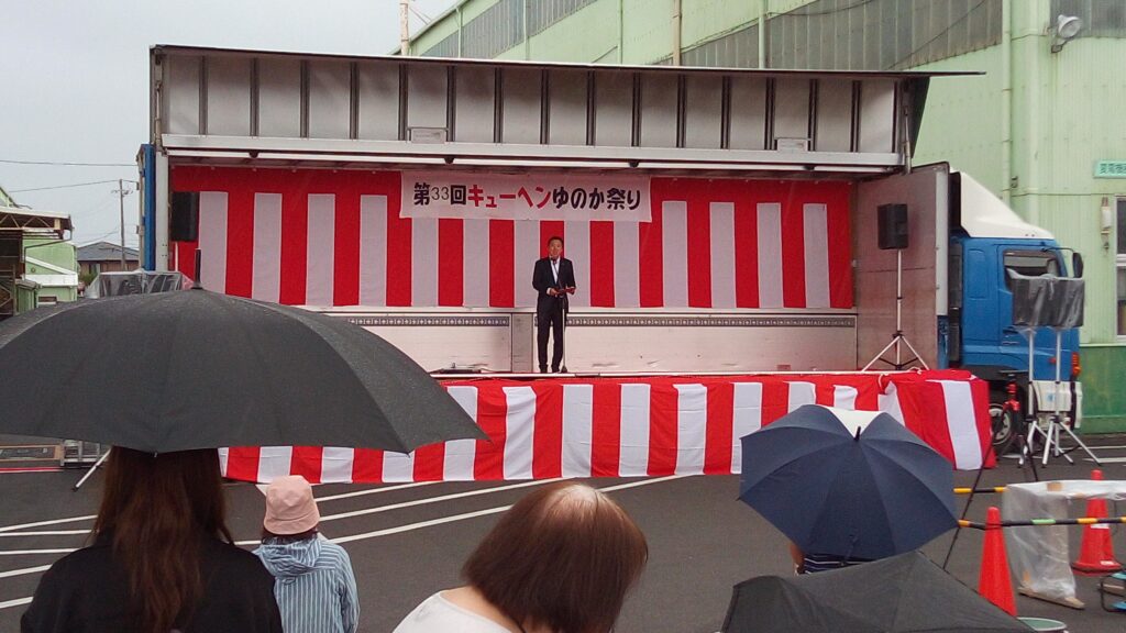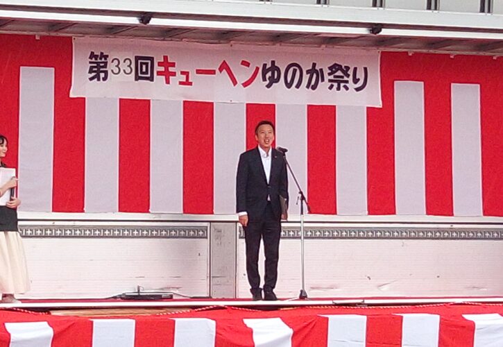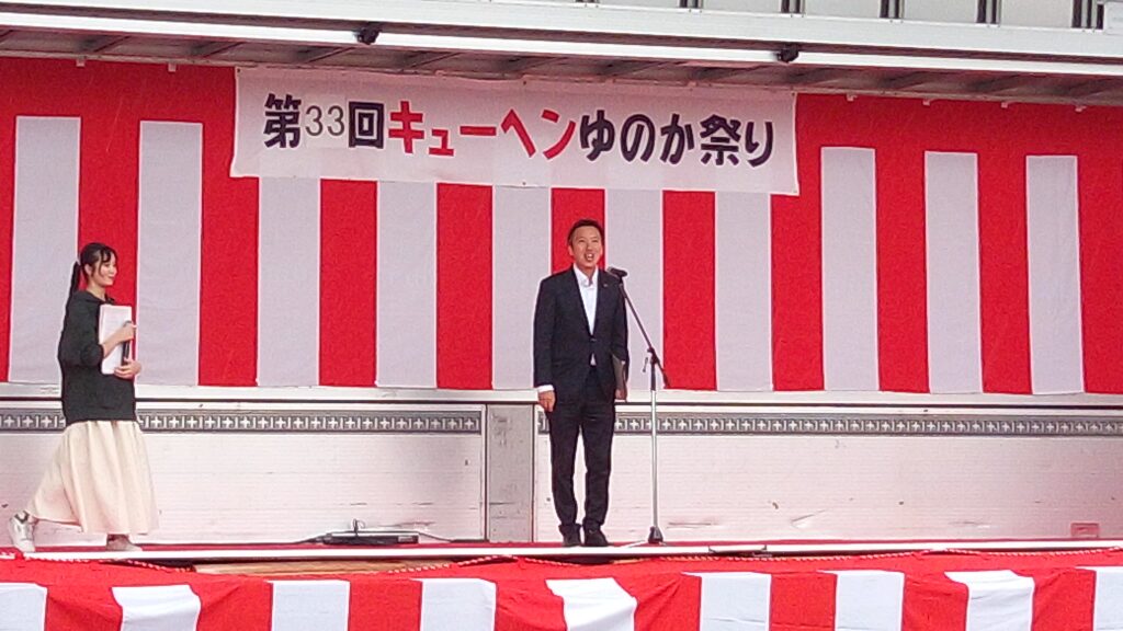 2025年10月26日、 「第33回 キューヘン ゆのか祭り」にお招きいただき、 来賓としてご挨拶をさせていただきました。