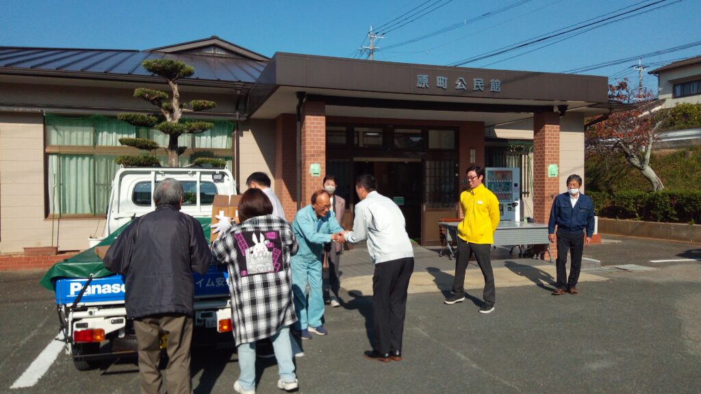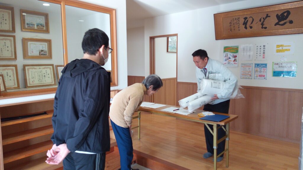 原町公民館・内殿公民館で受け取りを行い、「本当に助かる」といった声も寄せられました。