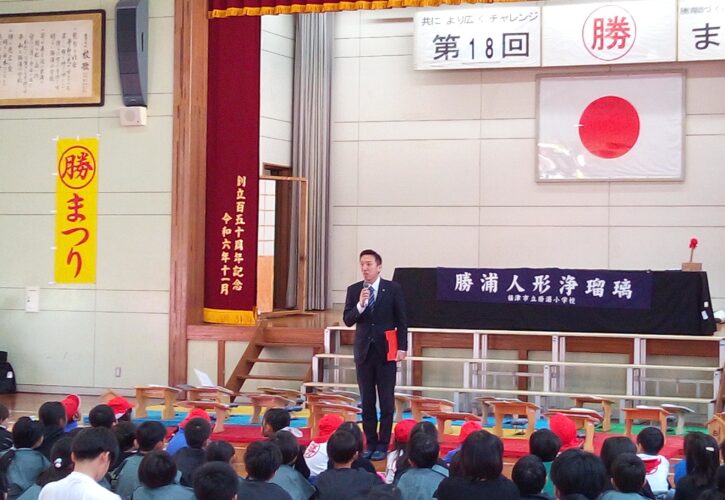 今月は、勝浦小学校の「マル勝まつり」と、神興小学校の「ハッピーフェスタ」に来賓として出席し、ご挨拶の機会をいただきました。