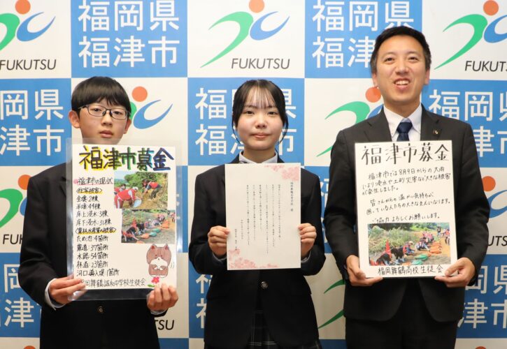 このたび、 福岡舞鶴高等学校・福岡舞鶴誠和中学校の皆さまから、 8月の大雨被害を受けた本市へのご寄付をいただきました。