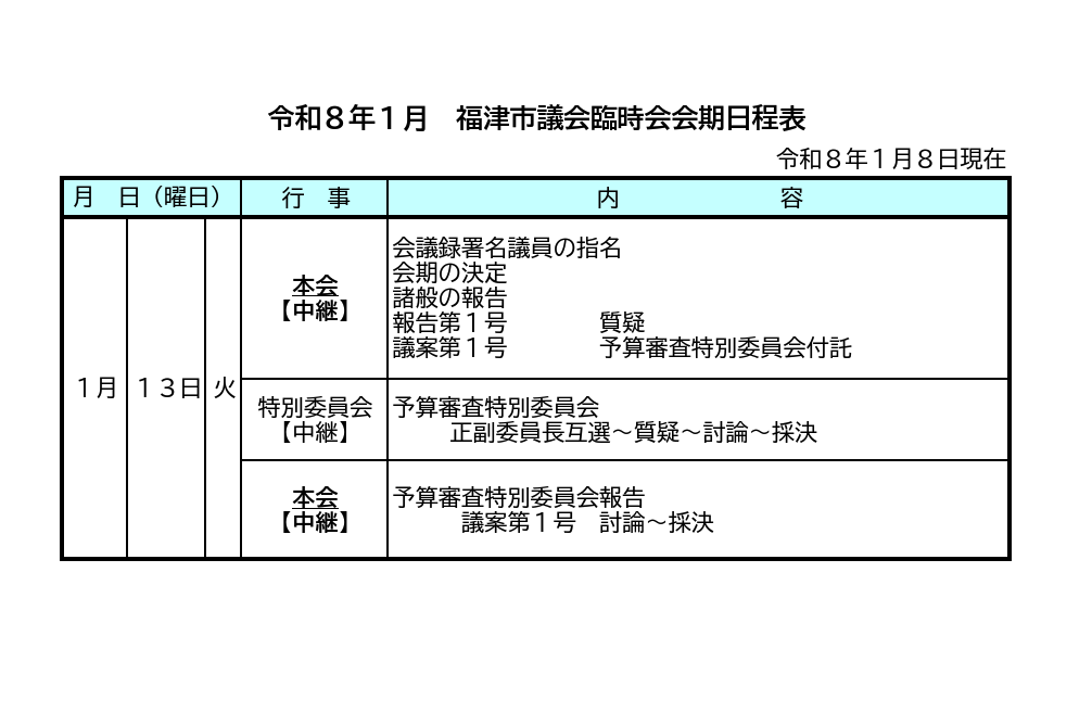 本日1月13日、物価高騰への早急な対応を行うため福津市議会臨時会を開会し、提出した補正予算案は可決されました。