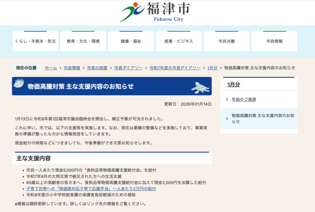 福津市では、物価高騰対策の主な支援内容をまとめた市役所の特設ページを作成しました。