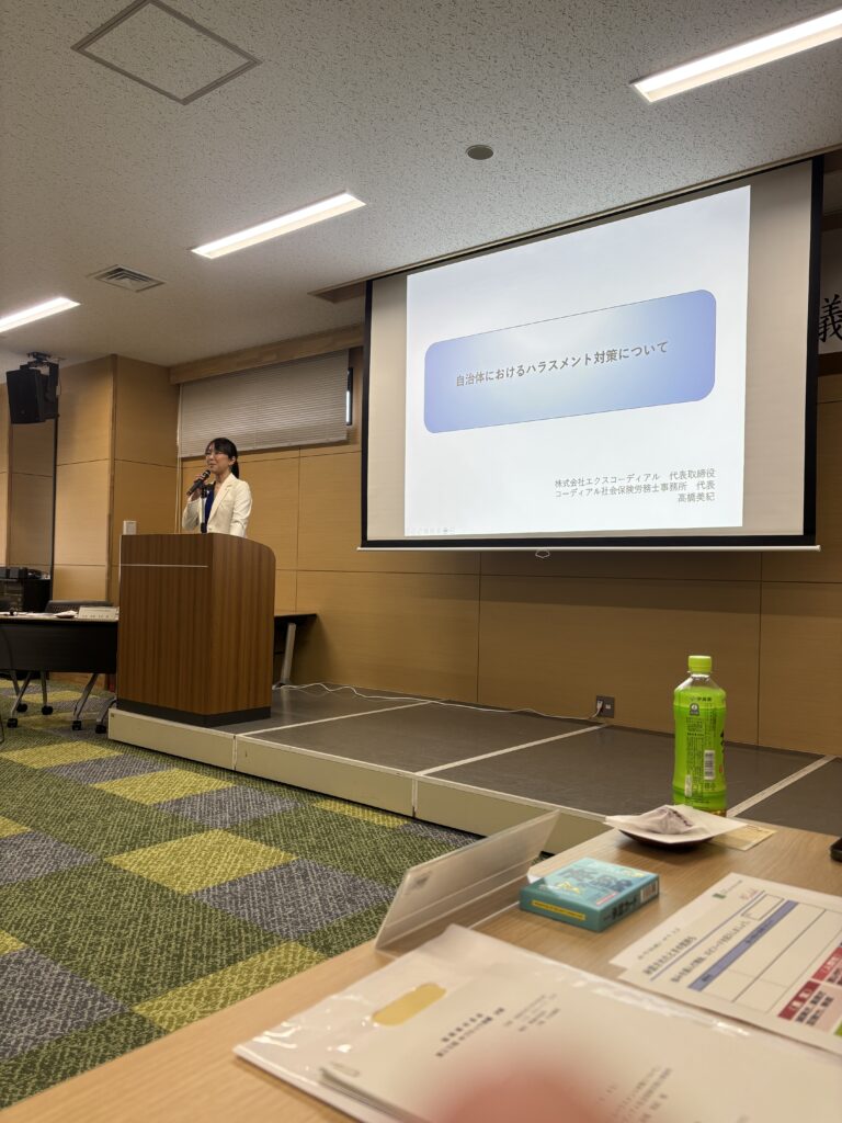 研修では、自治体におけるハラスメント対策について、講師の高橋美紀先生よりご講義をいただきました。 市役所においてハラスメントは決してあってはならないもの。